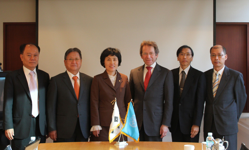 <보도사진 11. 23. 박영아 의원(가운데 좌측), 오스터왈드 UN대학 총장(가운데 우측)>