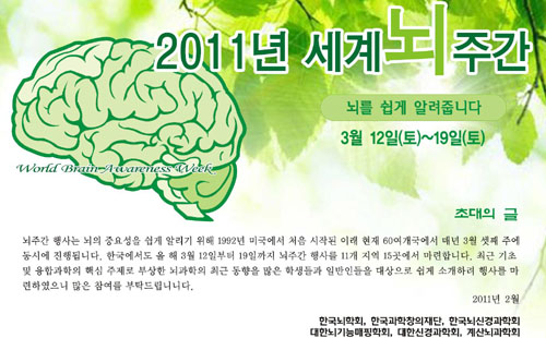 세계 뇌 주간(World Brain Awareness Week) 행사는 일반인에게 뇌의 중요성을 알리기 위해 지난 92년 미국에서 시작된 것으로 세계 각국이(현재 57개국) 매년 3월 셋째 주에 뇌를 알리는 다양한 행사를 동시에 개최하고 있다.