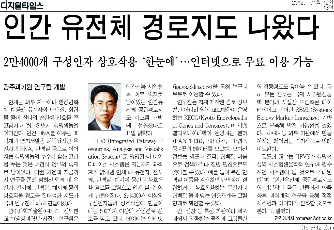 `IPVS(Integrated Pathway Resources, Analysis and Visualization System)"로 명명된 이 데이터베이스 시스템은 지금까지 과학계가 밝혀낸 인체 내 유전자, 전사체, 단백질, 대사체 등간의 상호작용 경로를 그림으로 쉽게 볼 수 있게 만들어졌다. 2만4000개 이상의 구성인자들의 상호작용이 만들어내는 500가지 이상의 작동경로 정보를 담고 있다. 데이터는 인터넷(ipavs.cidms.org)을 통해 누구나 무료로 이용할 수 있다.