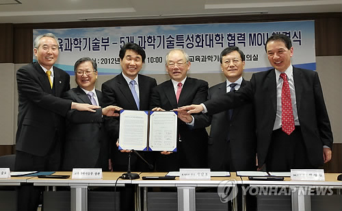 교육과학기술부와 광주과학기술원, 한국과학기술원, 대구경북과학기술원, 울산과학기술대학교, 포항공과대학교 등 5개 과학기술특성화대학과 상호 교류 확대 및 협력 활성화를 위한 업무협약(MOU)을 체결했다.