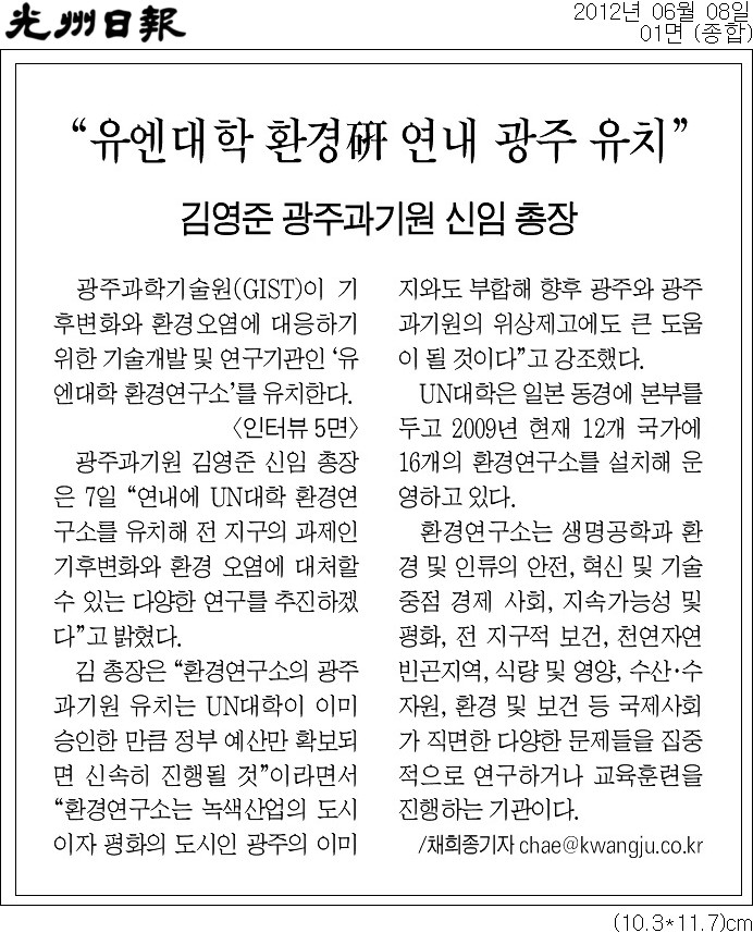 - 신임 광주과기원 김영준 총장 인터뷰(광주일보) -