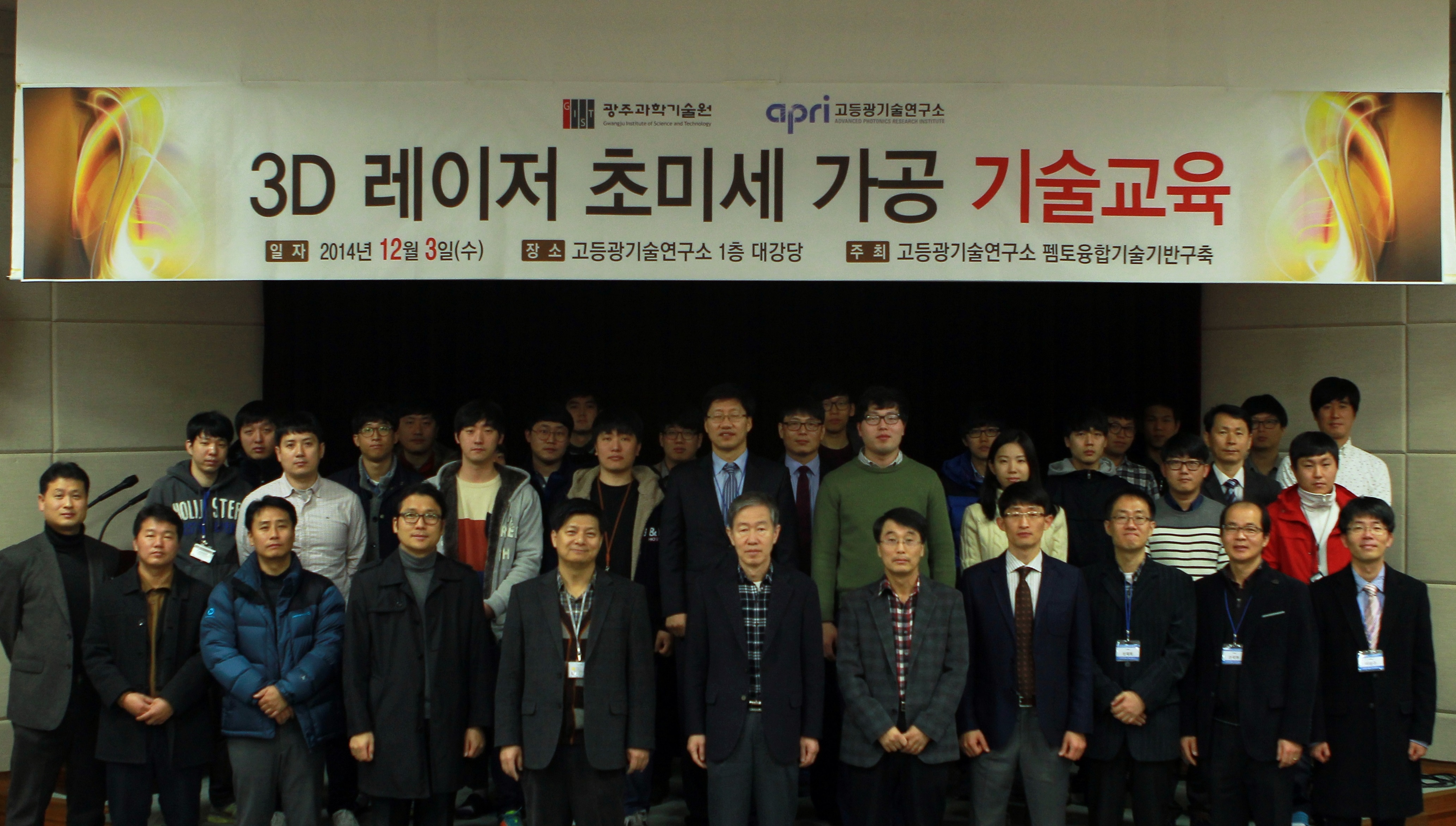 □ 지스트(GIST‧광주과학기술원) 고등광기술연구소(APRI‧소장 이용탁 교수)가 12월 3일(수) 광기술 관련 산학연 종사자들을 대상으로 산업용 펨토초 레이저, 3D printing, 마이크로 머시닝(micro machining) 분야의 신기술과 산업동향에 대해 소개하는 ‘3D 초미세 레이저 가공 기술교육’ 행사를 개최했다.