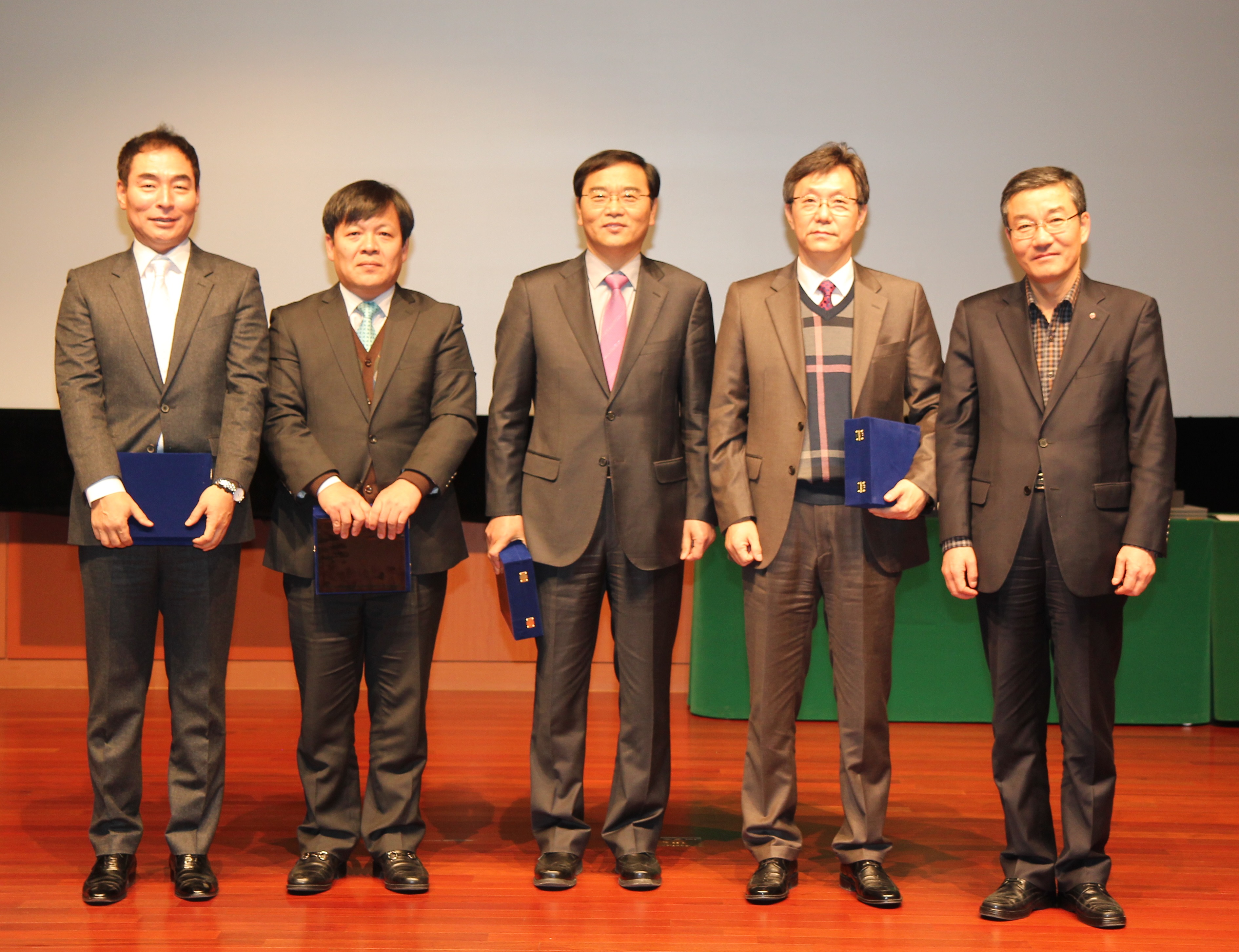 지난달 24일 서울금천구 LG전자 가산 R&D 캠퍼스에서 열린 시상식 모습(오른쪽에서 두 번째가 왕세명 교수)