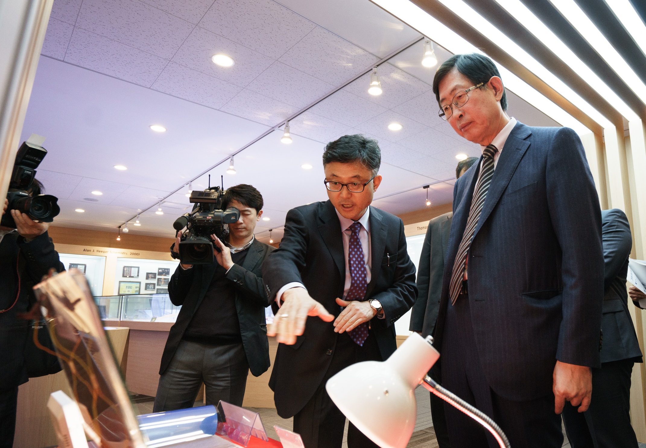□ 조환익 사장은 설명회 후 지스트 차세대에너지연구소(RISE‧소장 이광희)를 방문해 유기태양전지 등 플라스틱 전자공학 분야 석학인 이광희 소장(신소재공학부 교수)의 실험실을 둘러본 뒤, ‘수소차 허브도시’ 조성을 위해 올해 1월 개소한 광주 창조경제혁신센터를 방문했다.