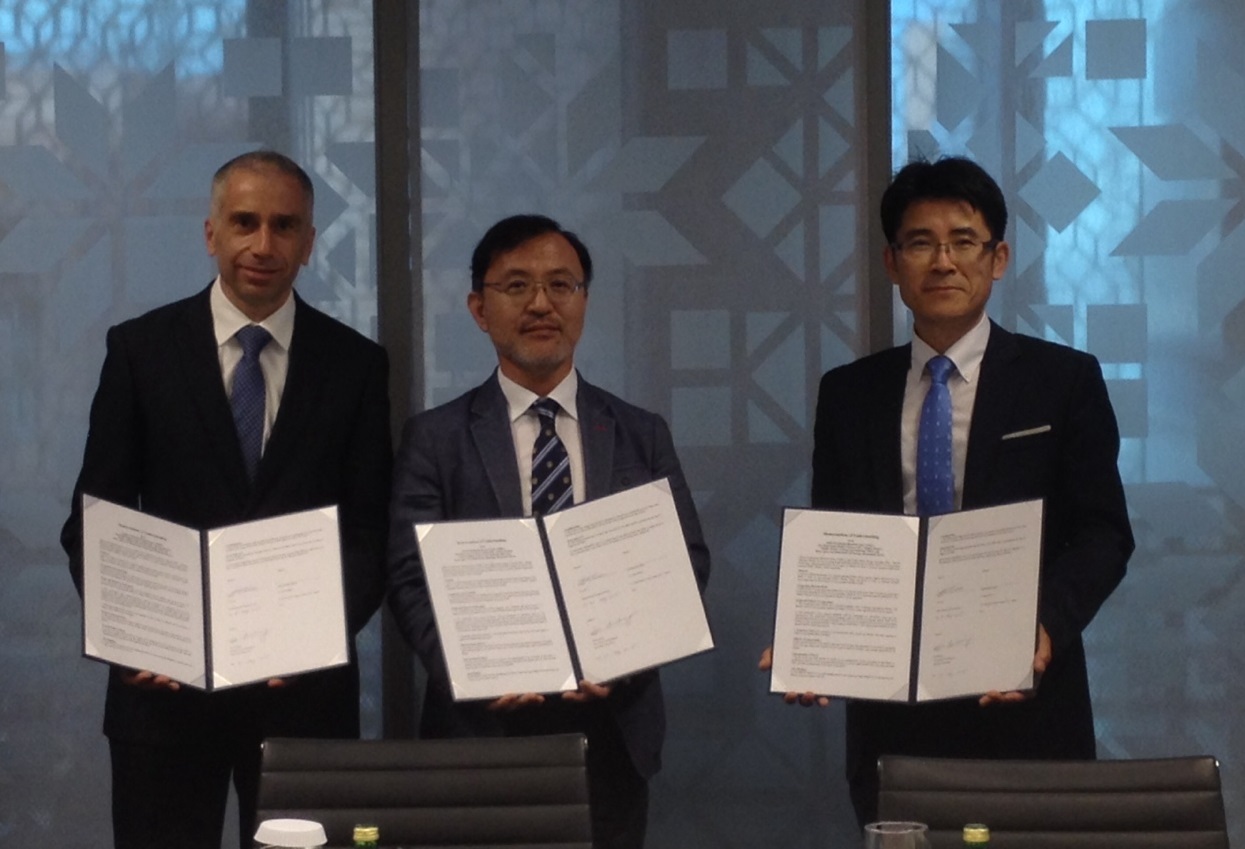□ 세 기관은 지난 5월 31일 UAE 아부다비의 마스다르 과학기술원(MIST)에서 글로벌담수화연구센터 김인수 센터장(지스트 환경공학부 교수‧現 한국담수화플랜트협회장)과 국토교통과학기술진흥원 이재붕 원장, 마스다르 아마드 벨홀(Ahmad Belhoul) CEO 등이 참석한 가운데 MoU 체결식을 개최했다.