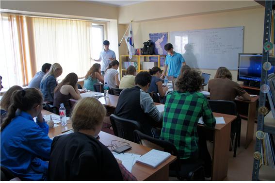 몰도바 ULIM대학 한국문화센터에서 진행된 지스트대학학생들의 한국어 교육 현장