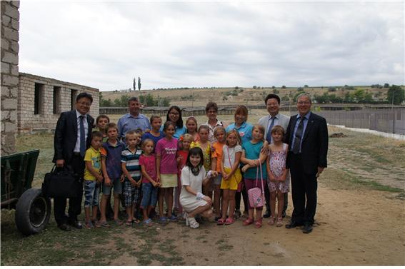몰도바 옥센티아 아동센터에서 진행한 야외 수업에 참여한 현지 아이들과 지스트대학 방문단