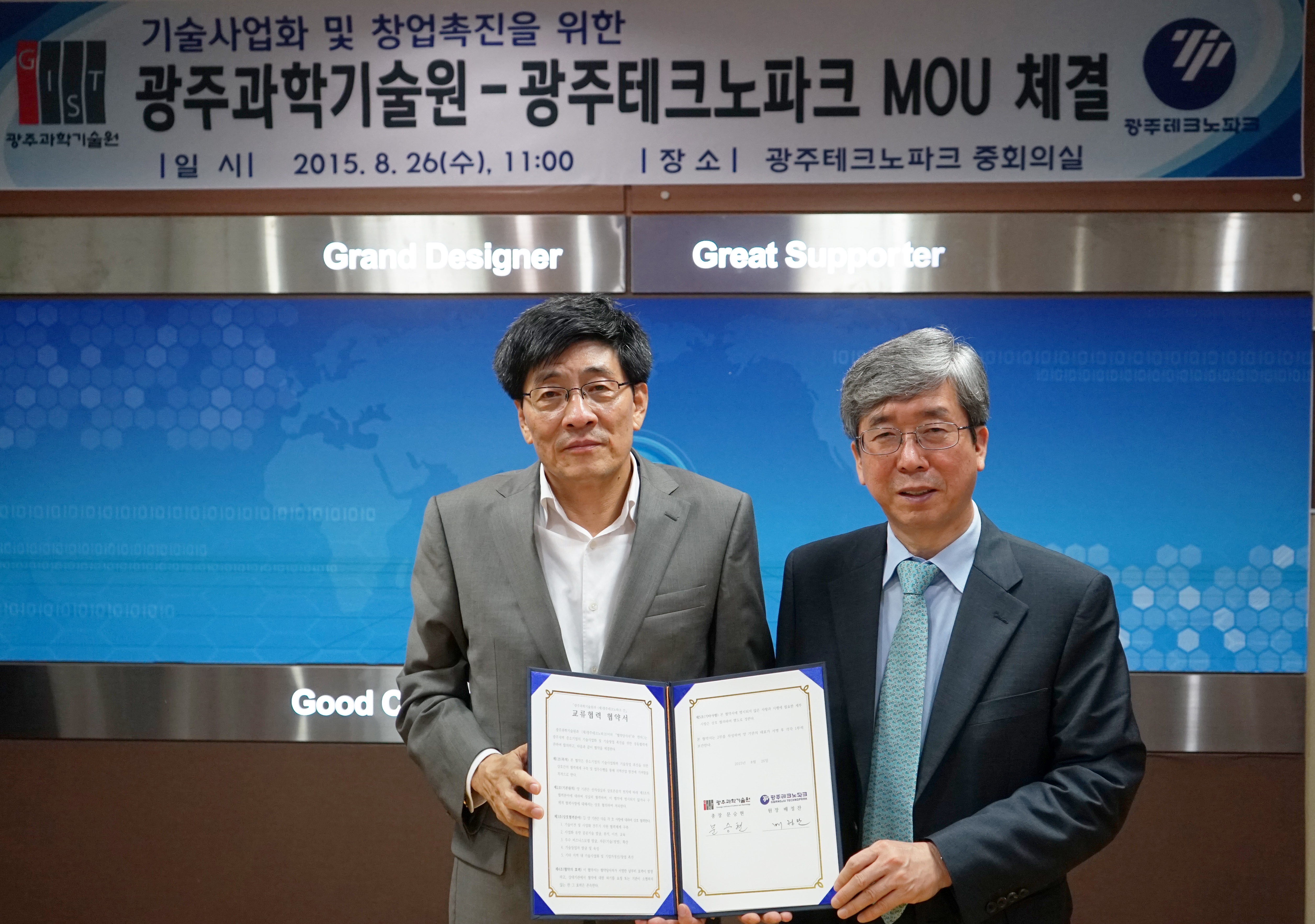 □ GIST(광주과학기술원·총장 문승현)와 광주테크노파크(원장 배정찬·이하 광주TP)가 8월 26일(수) 오전 광주TP(광주광역시 북구) 본부동 중회의실에서 지역 중소기업의 기술사업화와 창업 촉진을 위한 업무 협약을 체결했다.