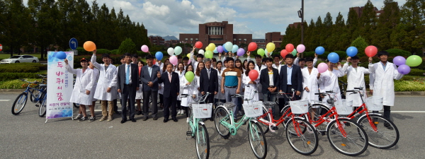 GIST(광주과학기술원)가 신입생들의 캠퍼스 생활필수품인 자전거를 기부 받는 ‘GIST 사랑 자전거 나눔 캠페인 두 바퀴의 꿈>’ 1주년을 맞아 그동안 모은 기부금으로 자전거 100대를 구입해 신입생들에게 전달했다.