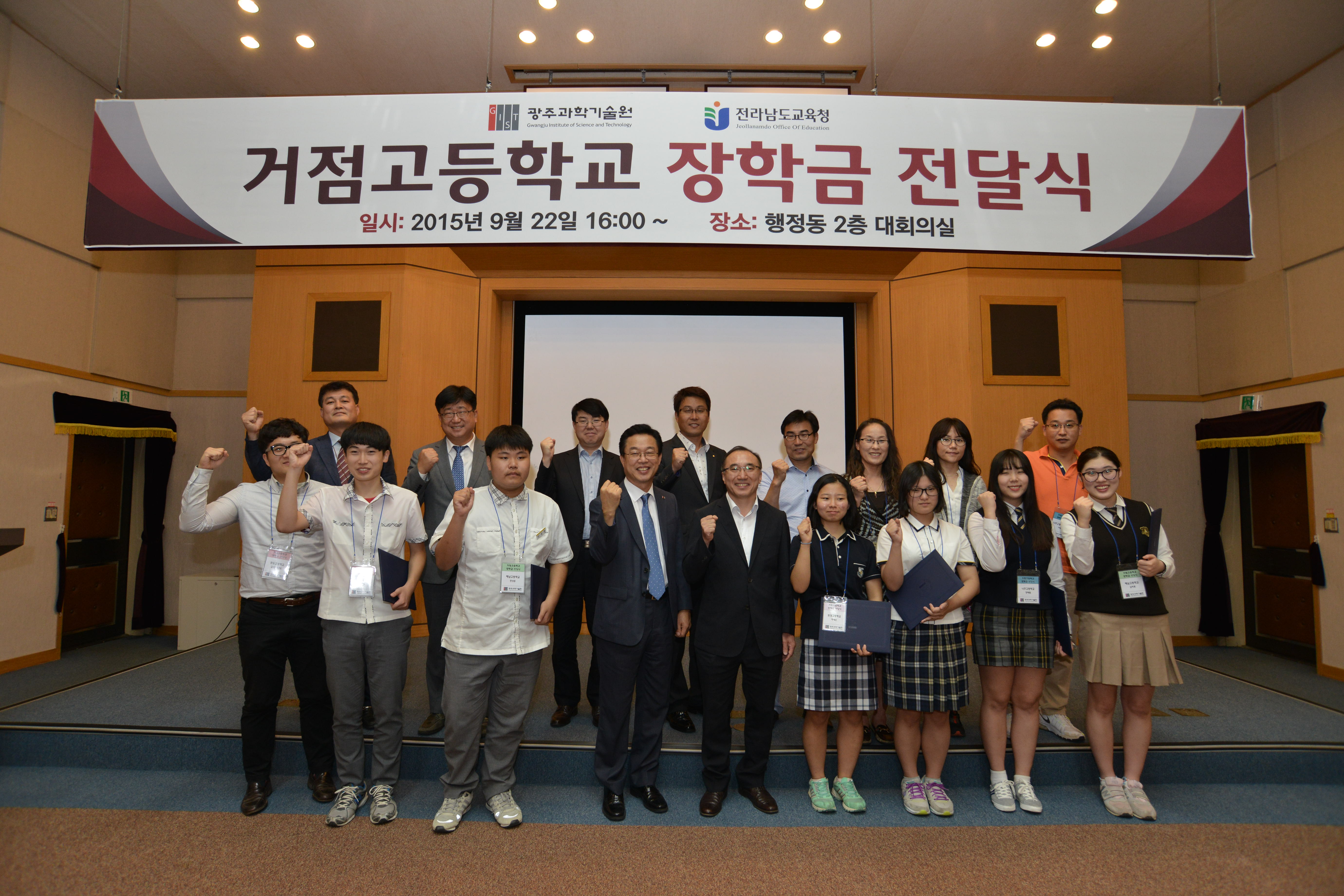 □ GIST는 이날 오후 4시 GIST 행정동 2층 대회의실에서 장학금 전달식을 개최하고, 나주고, 고흥고, 보성고, 해남고, 무안고, 완도고, 도초고 등 전라남도 지역 고교 7곳에서 추천된 학생 8명과 교사들을 초청해 학생당 장학금 30만 원을 전달했다.