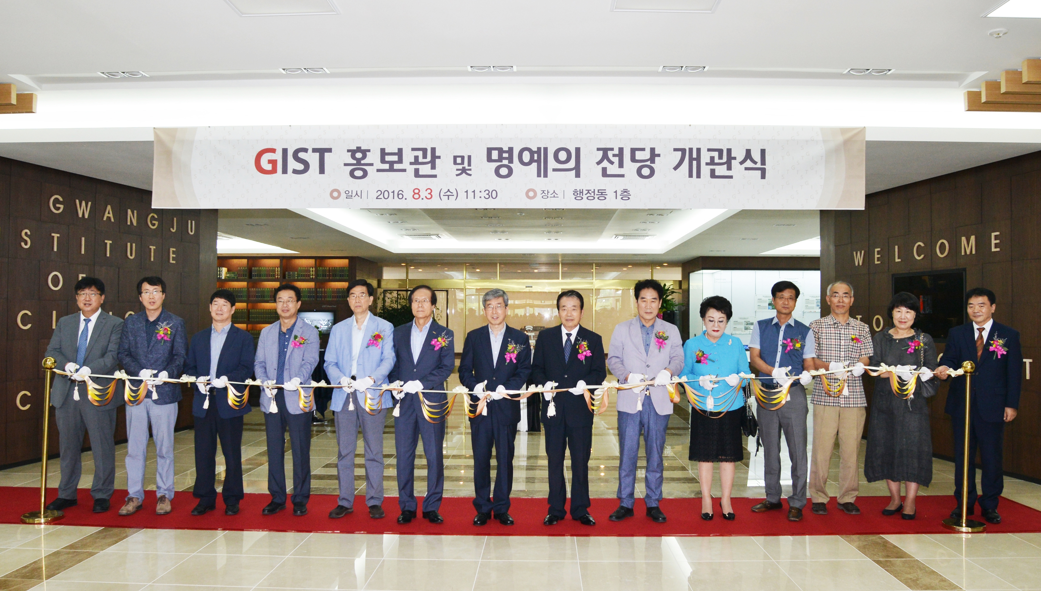 ∘ GIST는 8월 3일(수) 오전 11시 30분 행정동 1층에서 GIST 구성원과, GIST 발전재단 부이사장인 ㈜나영산업 고정주 회장과 이사진 등 50여명이 참석한 가운데 ‘홍보관 및 명예의 전당’ 개관식을 개최했다.