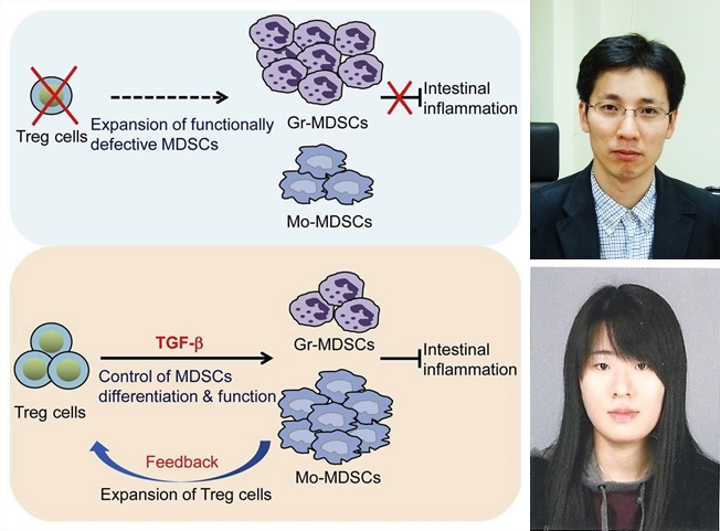 □ 본 연구팀은 우리 몸에서 염증 발생 시, 면역조절 T세포가 면역제어 골수성 세포의 분화과정에서 기능을 향상시키고, 분화된 면역제어 골수성 세포가 면역조절 T세포의 기능을 다시 향상시키는 방식을 통해 염증을 효율적으로 제어 가능하다는 사실을 확인했다.