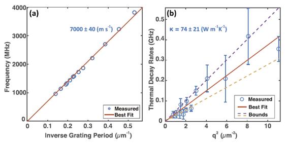 ∘ 초고속 격자 회절 분광법은 전기적 혹은 열적 접촉을 피하면서도 나노 소재의 초고속 열의 발생과 전달을 관측할 수 있는 방법으로 다양한 이차원 나노 소재에 응용이 기대된다. 특히 이황화몰리브덴 박막에서 열 격자의 형태가 열의 전달에 따라 소멸하는 시간을 관측하여 기존에는 이론적으로만 계산된 표면 방향 열전도도를 정량화 할 수 있었다.