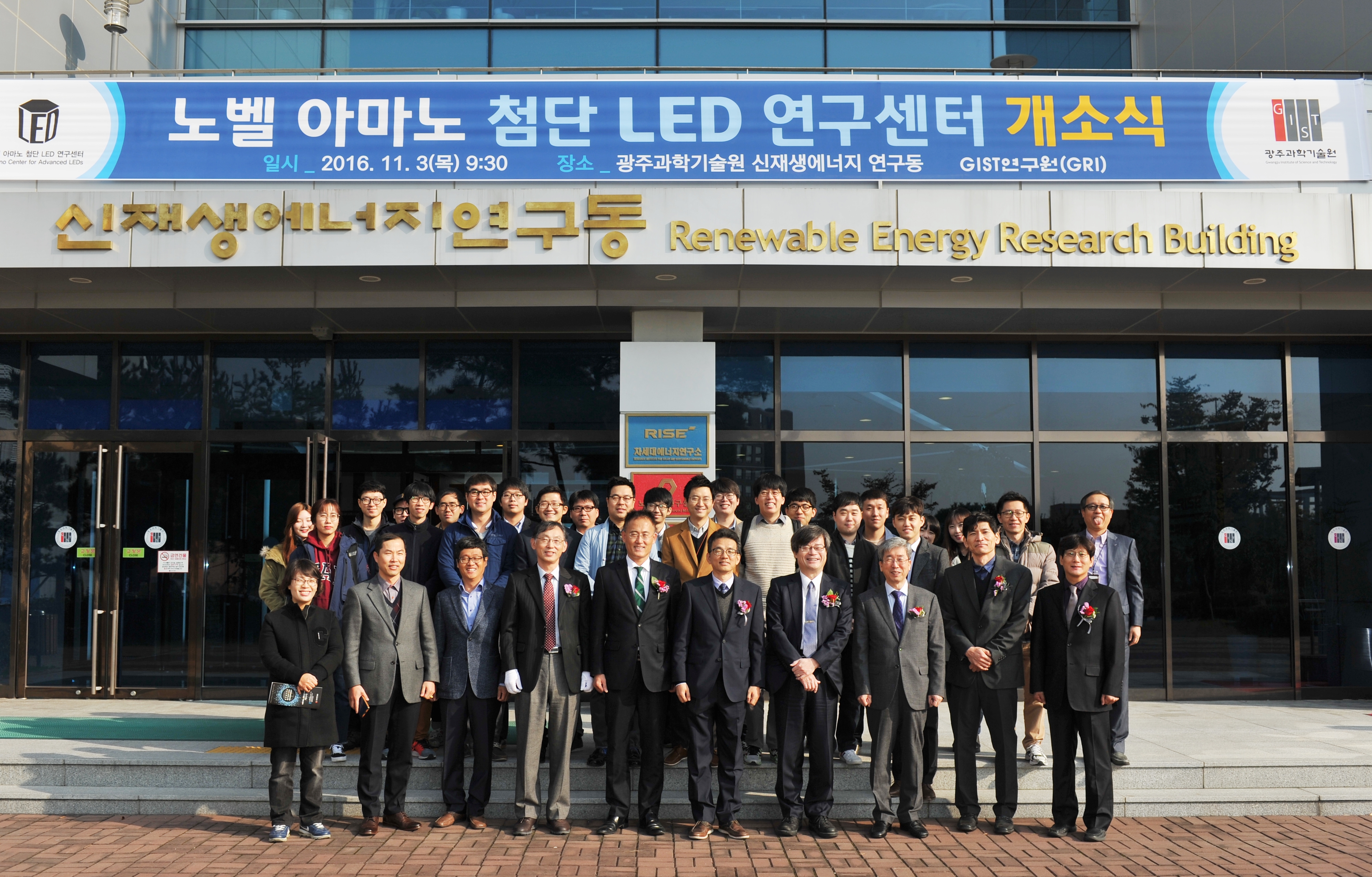 ∘ GIST는 11월 3일(목) 오전 9시 30분 GIST 신재생에너지연구동 1층에서 문승현 총장과 아마노 교수, 이동선 부센터장(전기전자컴퓨터공학부) 등 30여 명이 참석한 가운데 아마노 교수의 이름을 딴 ‘아마노 첨단 LED 연구센터’ 개소식을 개최했다.