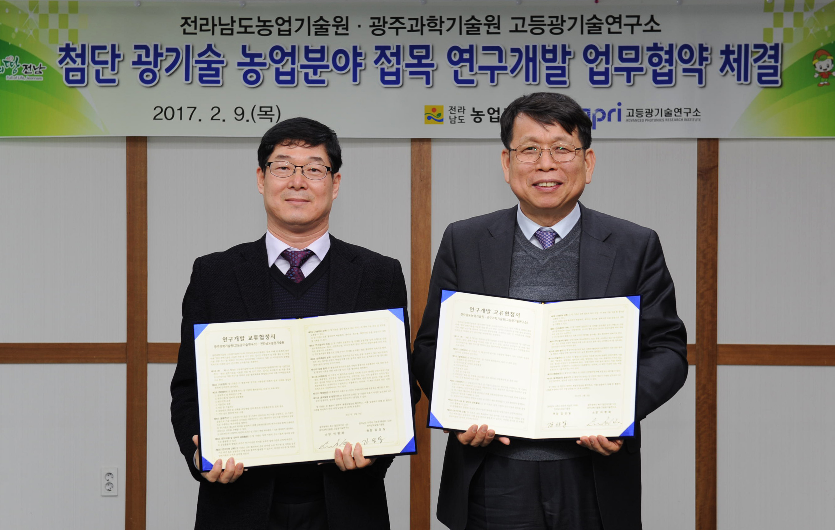 - 2월 9일 GIST 고등광기술연구소와 전남농업기술원 연구 협약 체결