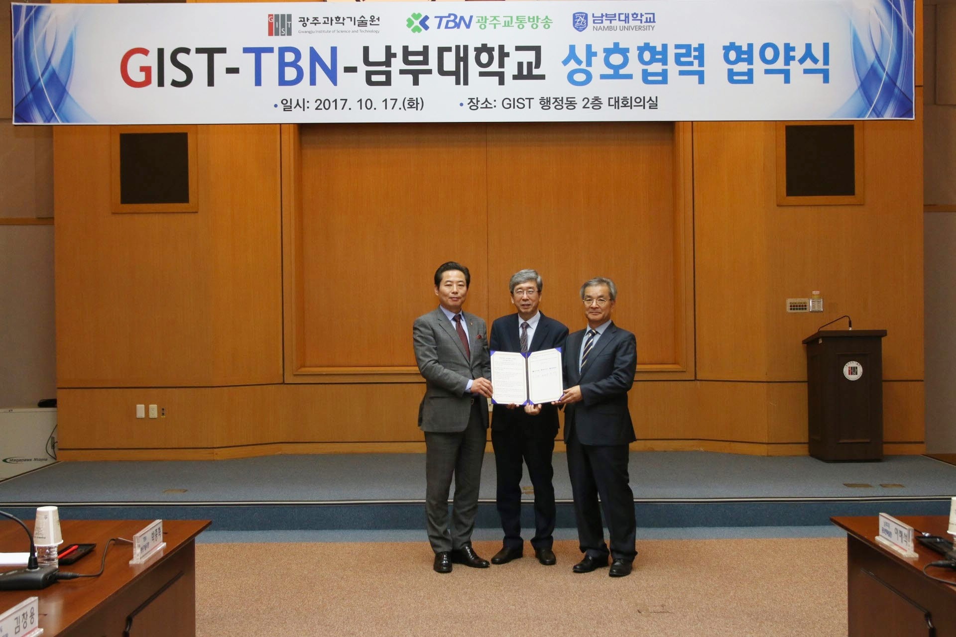 ▲ TBN 안태욱 본부장(왼쪽), GIST 문승현 총장(가운데), 남부대 조성수 총장(오른쪽)