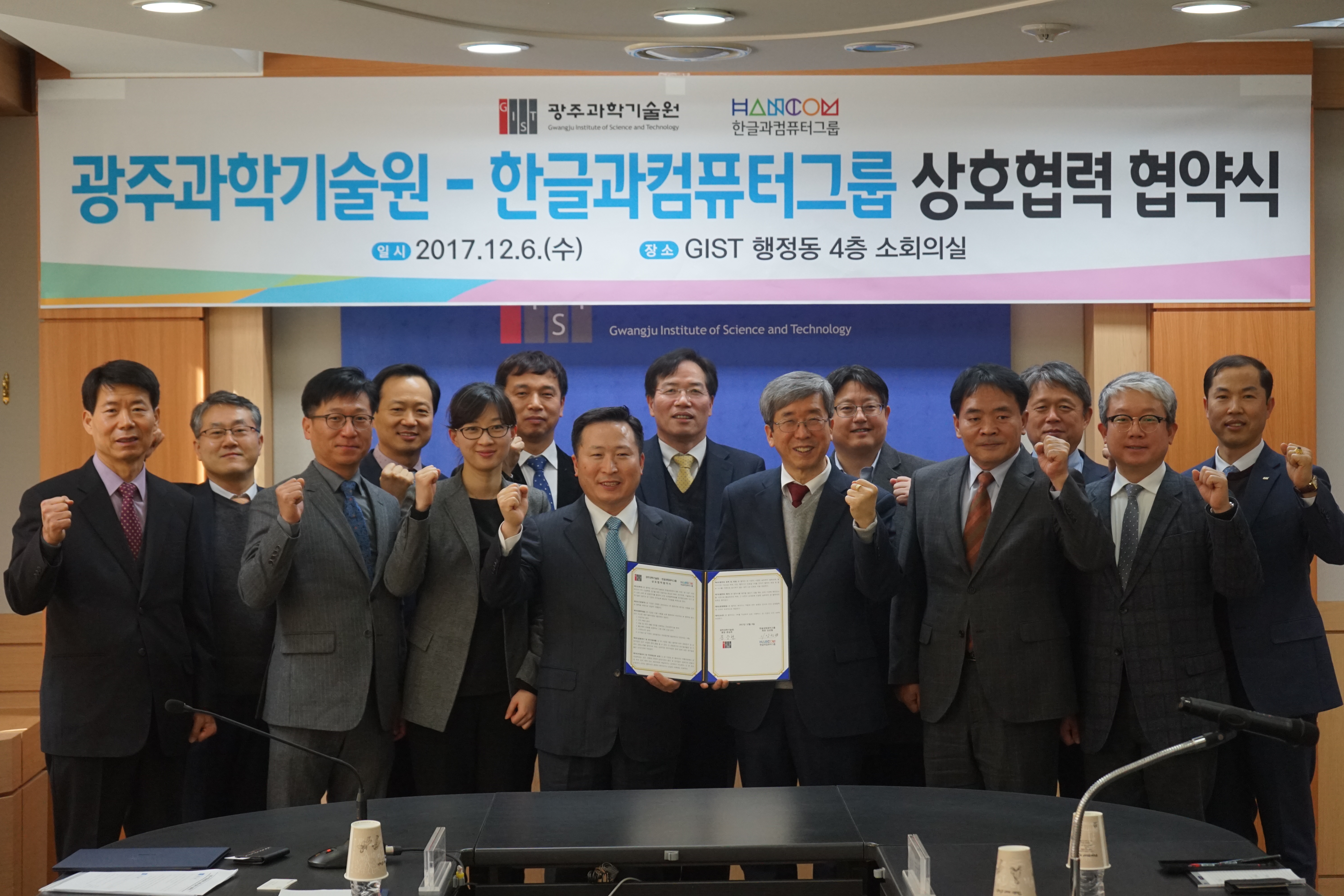□ GIST(광주과학기술원, 총장 문승현)는 한글과컴퓨터그룹(회장 김상철)과 4차 산업혁명 선도를 위한 인공지능 중심의 R&D, 국가 R&D, 국방 및 국민안전을 포함하는 안보과학기술과 헬스케어 로봇을 포함하는 고령 친화 산업, 스마트시티 분야 과학기술 연구협력을 위해서 인력 교류 및 과제 발굴을 포함하는 상호 양해각서(MoU)를 체결했다.